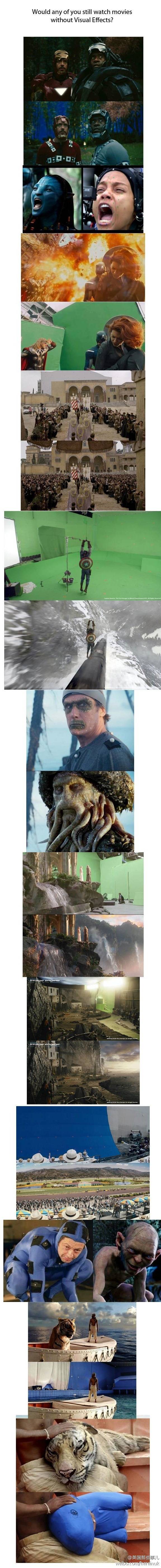 如果没有电影特效。。。我们看到的电影是怎样的。。。。。前面看上去还能忍。。。看到最后一张我喷了一屏幕的水啊啊啊啊啊。。。via@英国那些事儿