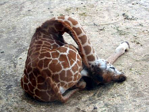 心理导读:见过长颈鹿睡觉的样子吗?以前老是在想,长颈鹿那么长的脖子,睡觉怎么办呢?是挂树枝上?还是直接倒地?这下真相了。——www.xinli001.com
