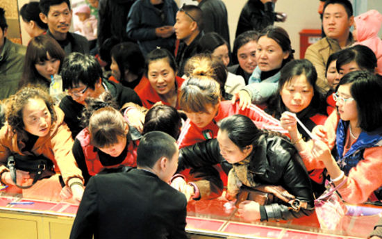 我怀疑故意把大妈们描绘成“金融大鳄”的说辞,很可能是为了混淆视听,而成为“坑娘”的序曲。抢购点首饰无可厚非,不过如果大妈们把这看作是投资而入场,信了段子以为自己是金融大鳄,就很有可能三五年也解不了套。把“融”字拿掉,变作“金大鳄”倒是真的。