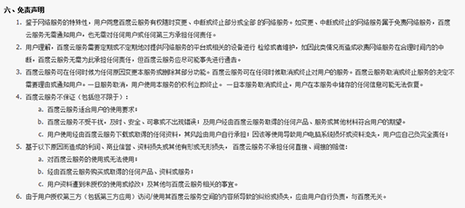 国内的云存储服务商也是多如牛毛,下图是百度云的一部分用户协议: