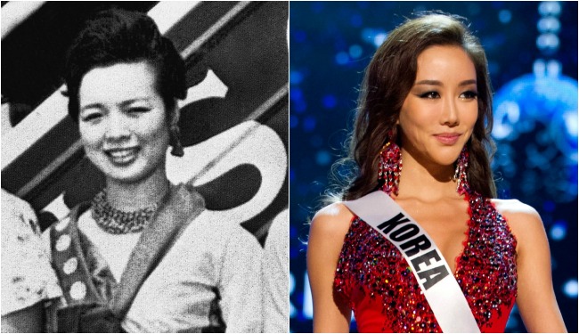 1960年韩国小姐宋米熙雅与2012年韩国小姐李星惠。(美联社)